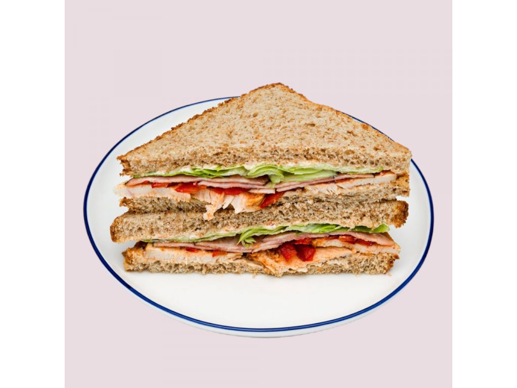 Složení: toustový chléb tmavý, ledový salát, červená paprika, kuřecí prso, grilovací koření, mletá paprika, rostlinný olej, worchestrová omáčka, rajčatový protlak, sůl, česnek, olivový olej